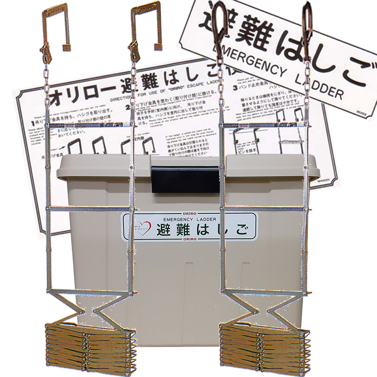 オリロー避難はしご 7型 (折り畳み式) 樹脂BOXセット ![]() | オリロー避難はしご 7型 (折り畳み式) スチールBOXセット ![]() | オリロー避難はしご 7型 (折り畳み式) ステンレスBOXセット ![]() |