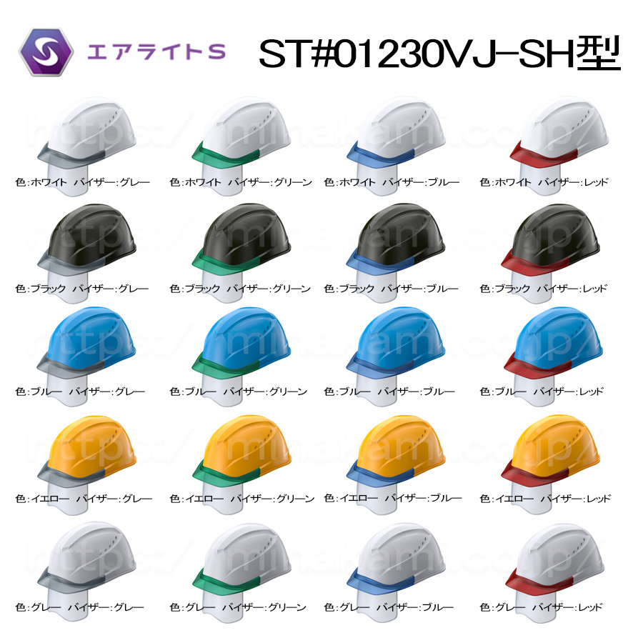 ヘルメットST#01230VJ-SH型 通気孔あり 選べるバイザー シールド付 【 防災 工事用 ヘルメット 】