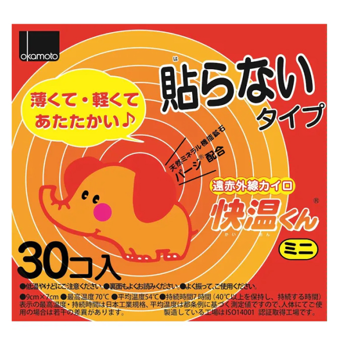 オカモト貼らない快温くんミニ30PT4547691669711 オカモト カイロ 使い捨てカイロ 日本製 快温くん 冷え対策 防寒