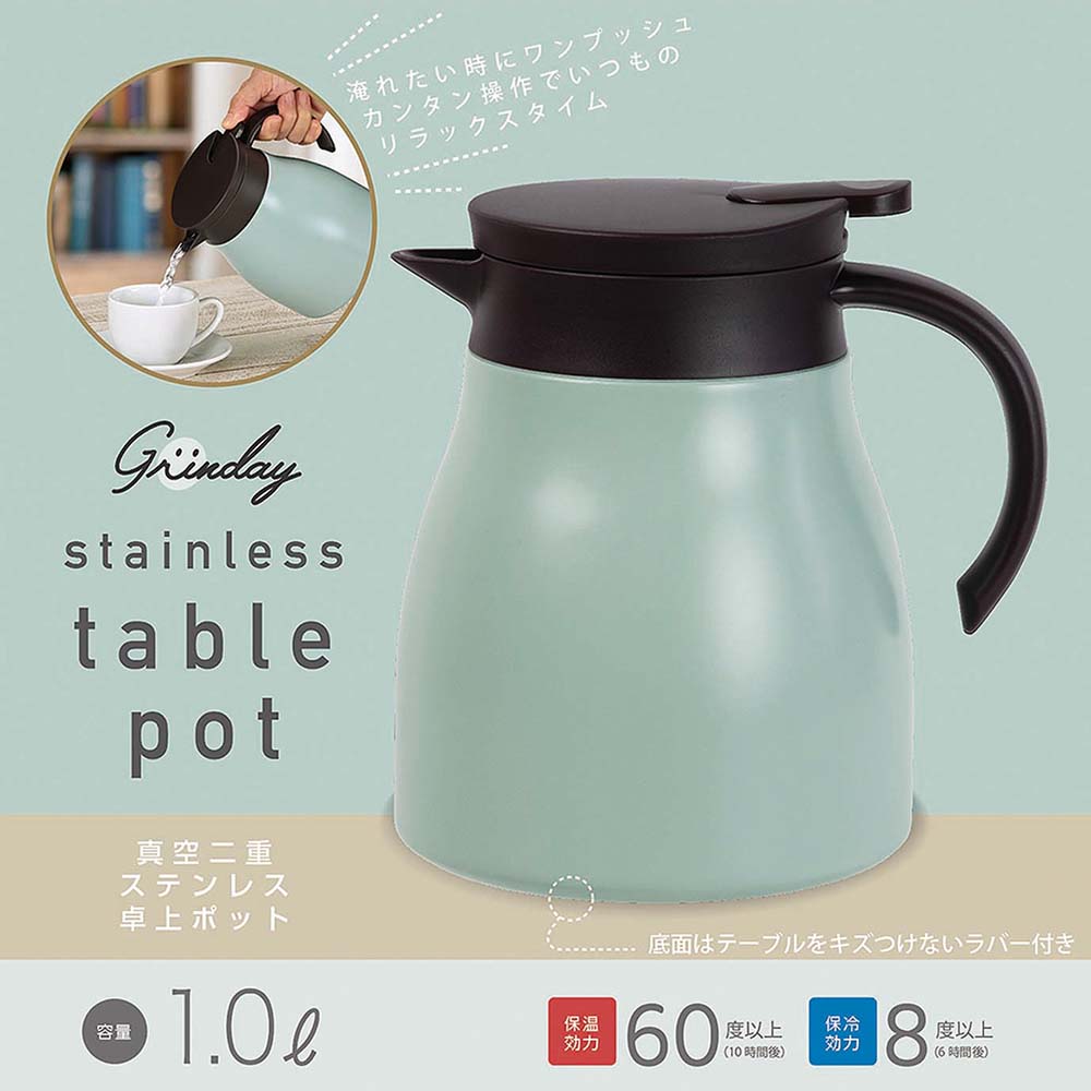 Grinday グリンディ 真空二重 ステンレス卓上ポット1L(真空断熱 二層 構造 テーブル 魔法瓶 保温 保冷 )1リットル 1.0L