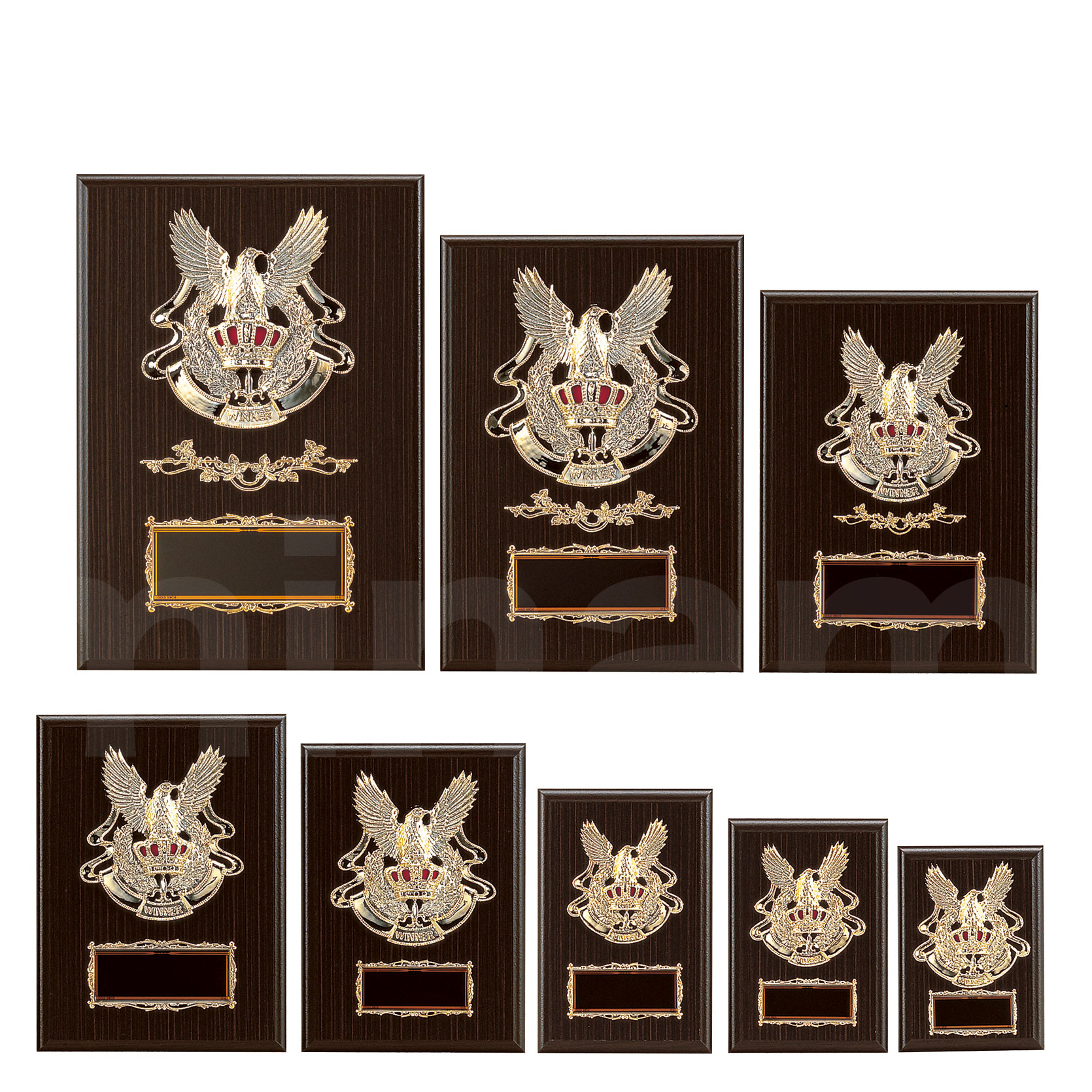 表彰楯 ワシ王冠 K5052 木製圧縮材 化粧箱入り 名入れ 彫刻 優勝 表彰 トロフィー 記念 記念品 選べるサイズ 南九州トロフィー