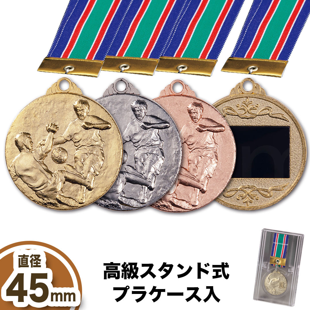 メダル MH (直径45mm・本体重さ40g) スタンド式プラケース入 首掛けリボン付 金属製 名入れ 彫刻 優勝 表彰 トロフィー 記念 記念品 南九州トロフィー