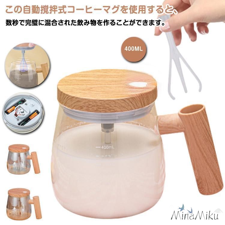自動かき混ぜマグカップ 磁石式 大容量 電動回転式 自動?拌 400ml ガラス製 自動?拌カップ 家庭用 蓋付き 防漏れ 充電式 ハンドル付き