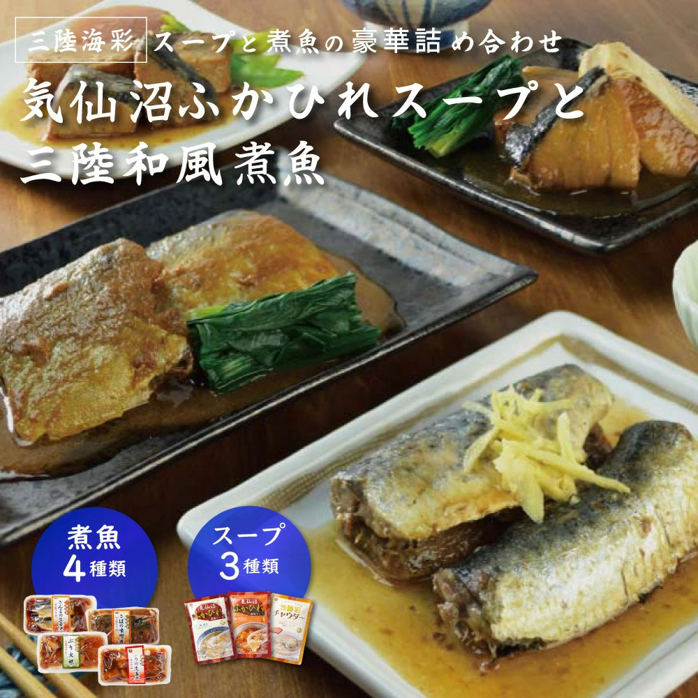 ギフト 煮魚 フカヒレ 気仙沼ふかひれ濃縮スープ & 三陸海彩 和風煮魚惣菜詰合せ 南三陸ホテル観洋 阿部長商店 お取り寄せ グルメ