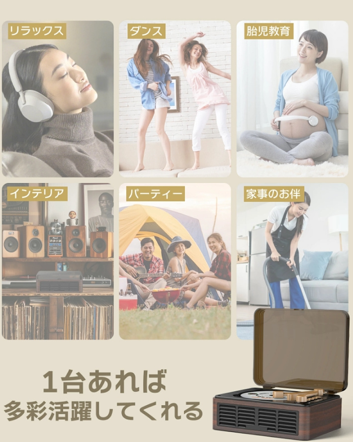 音楽を聴くのはもちろん、語学学習、幼児教育、胎児教育、出産前教育、パーティー、インテリア、家事しながらの音楽鑑賞などさまざまな用途に大活躍。