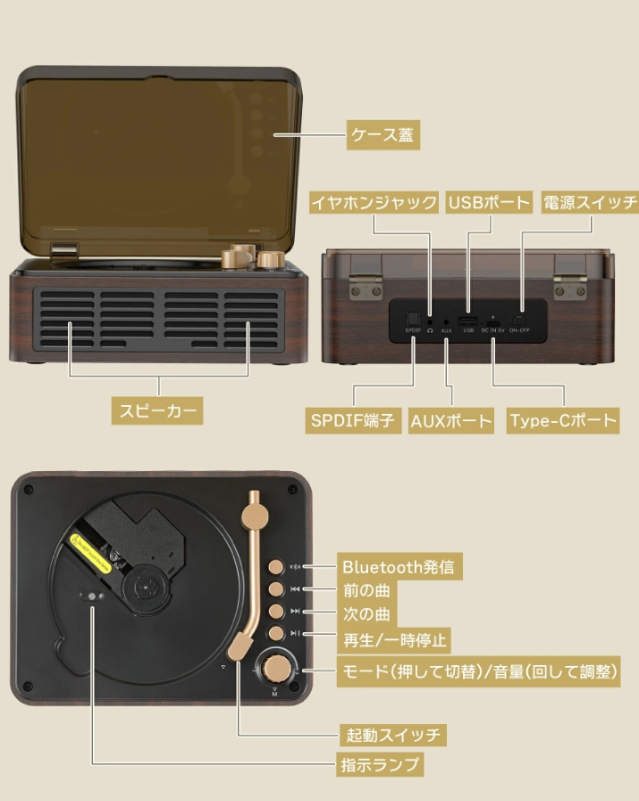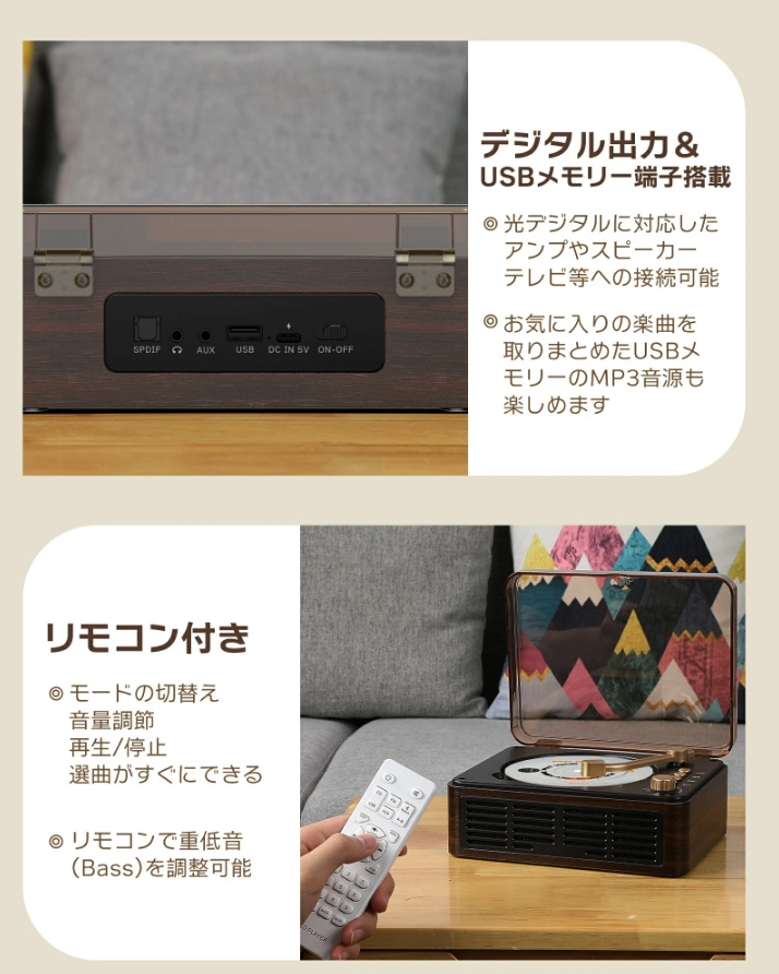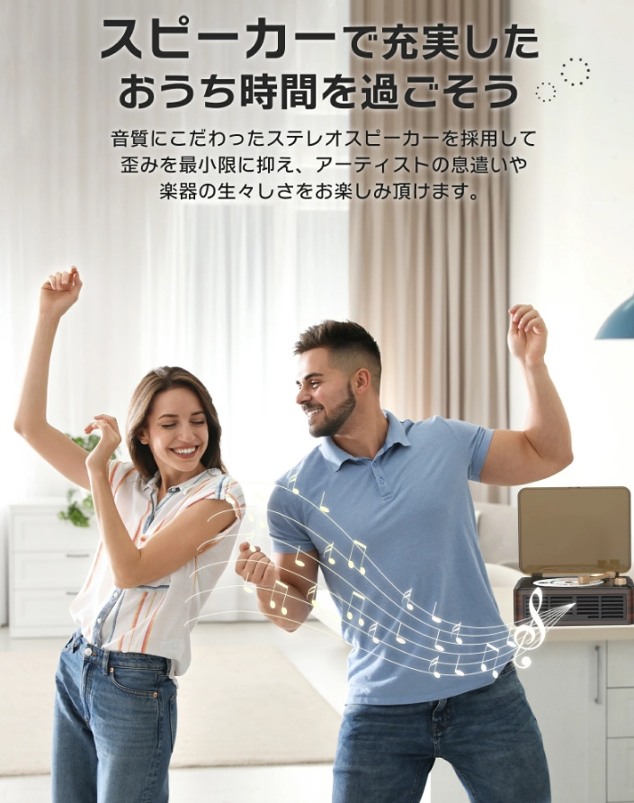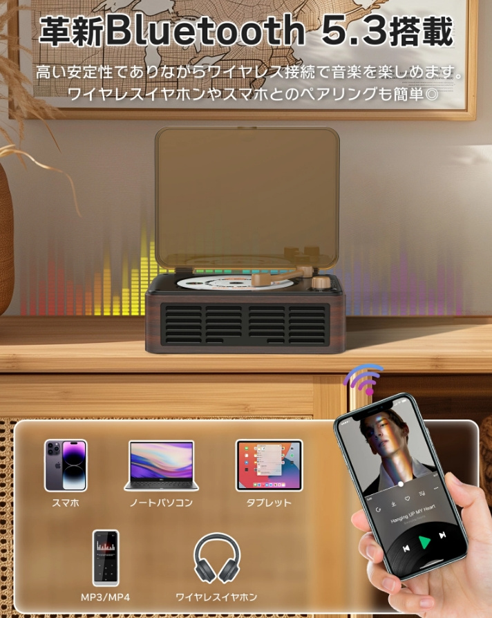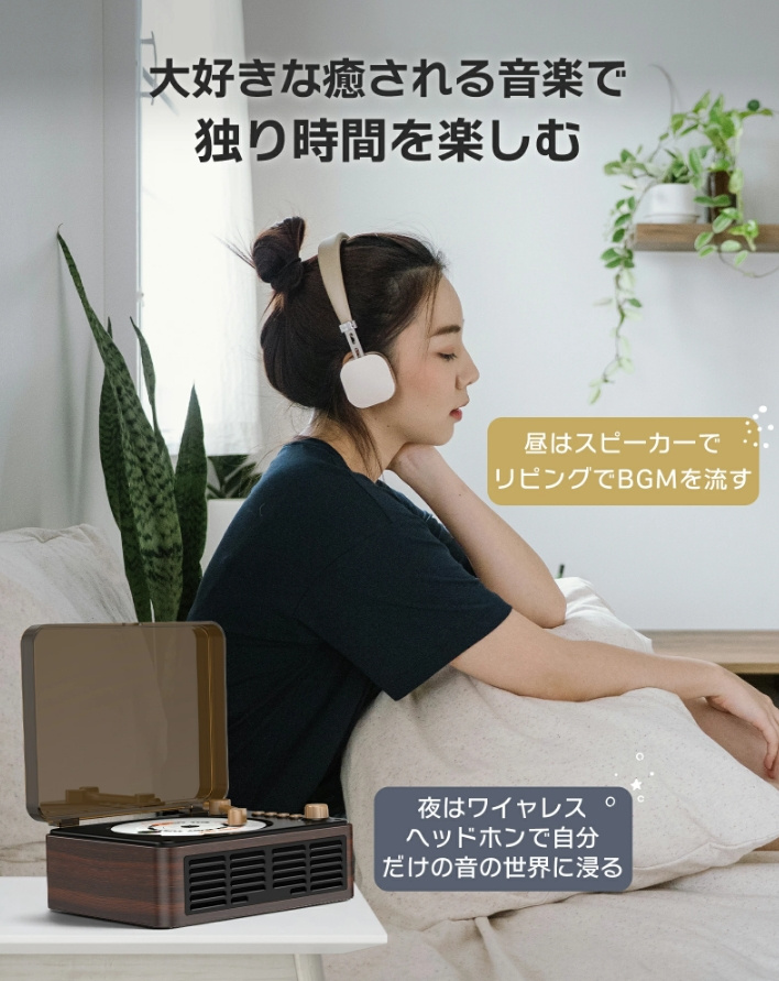 クラシカルなレコ一ドプレイヤー型のフォルムで、可愛さに心奪われる!レト口で可愛い見た目だけでなくスペックの高さも魅力的。