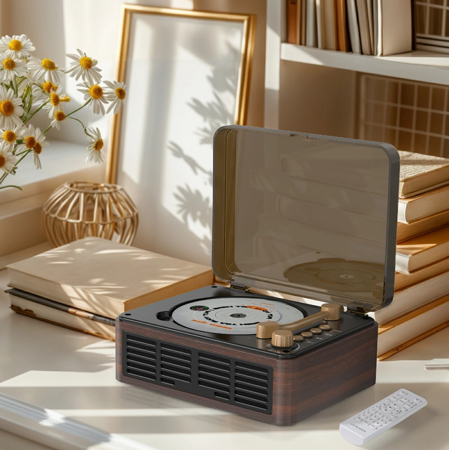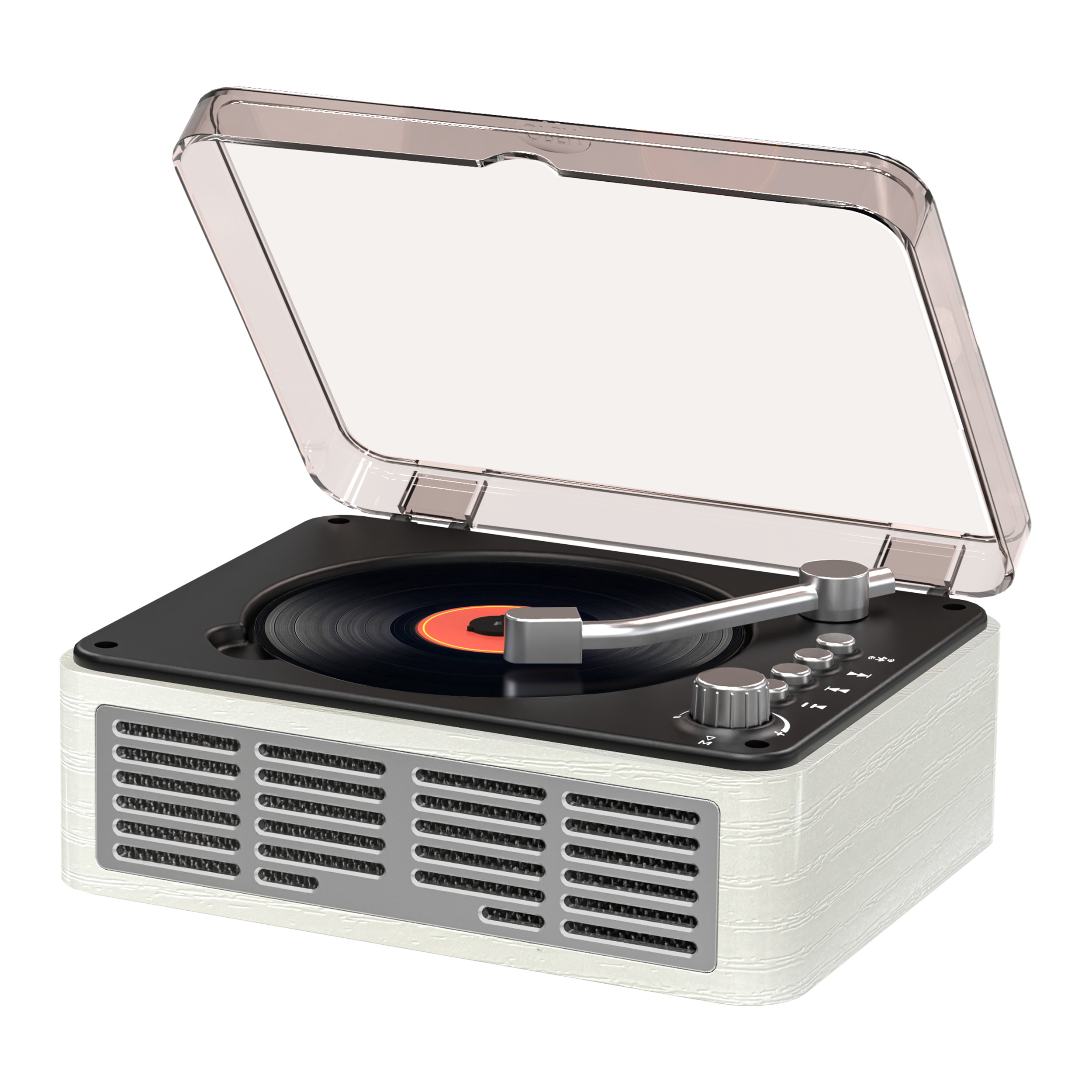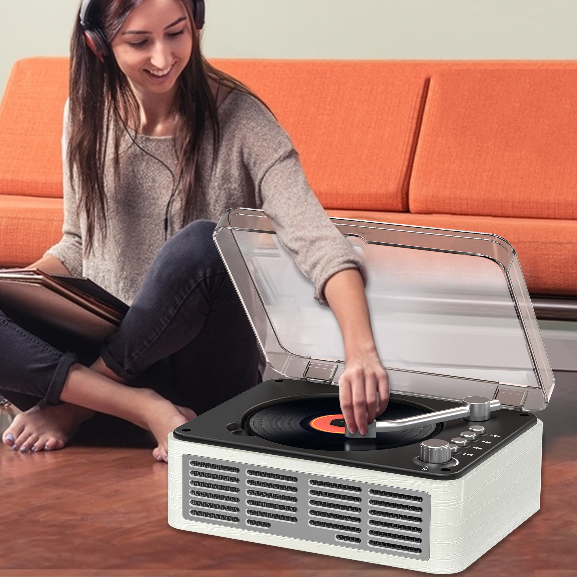 ?新しくも懐かしくもあり、どこに置いても馴染むレト口な逸品。レコードっぽく蓋が上がるところが面白い、ミニレコードプレーヤーのようなデザインで、部屋のインテリアに最適です。