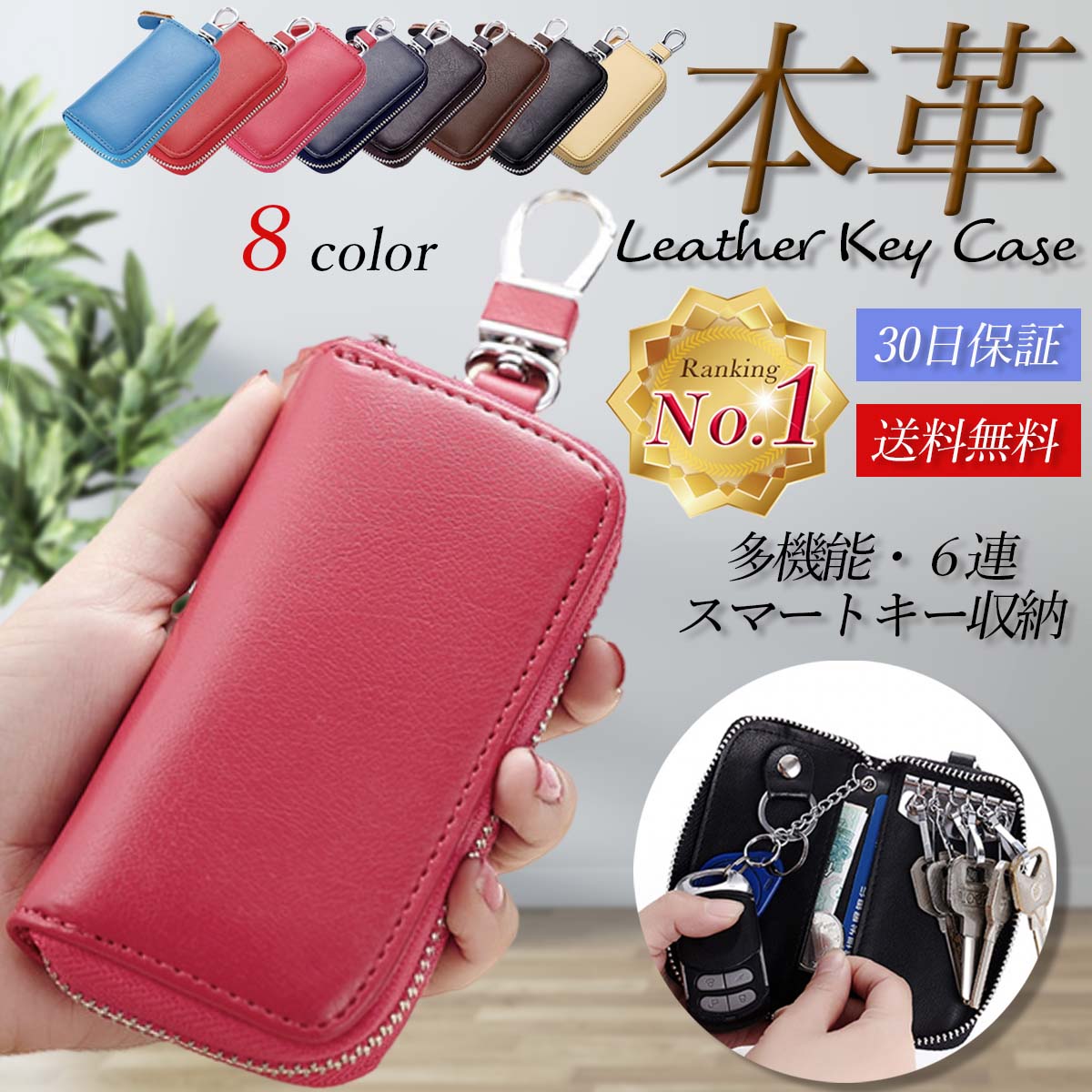 普通鍵6本、スマートキー1本収納可能、キーホルダー、カードポケット2か所