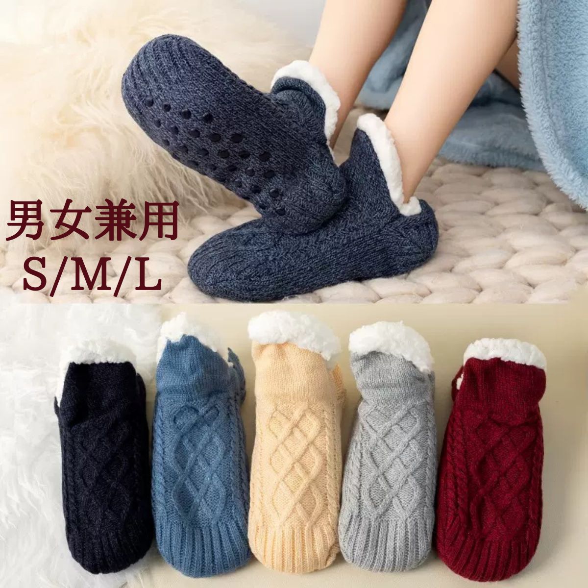 【POINT】起毛 ルームソックスしなやかに伸縮性のある素材に裏起毛加工したソックス肌触りよく、足元はいつもポカポカ今年の冬は、冷え性のお悩みは解消!冷え取りソックスの重ね履きにも【カラー】ネイビー/ブラック、レッド、ネイビー、ブルー、ベージュ、グレー【サイズ】M/L/XL※初期不良の保証は7日間となります。到着後7日間以内に不具合がないかをご確認お願いいたします。※生産ロットにより柄の出方や色の濃淡が多少異なる場合がございます。※ご使用のモニターによって掲載写真と若干色の見え方が異なる場合がございます。※洗濯時は色物と避けて洗濯してください。