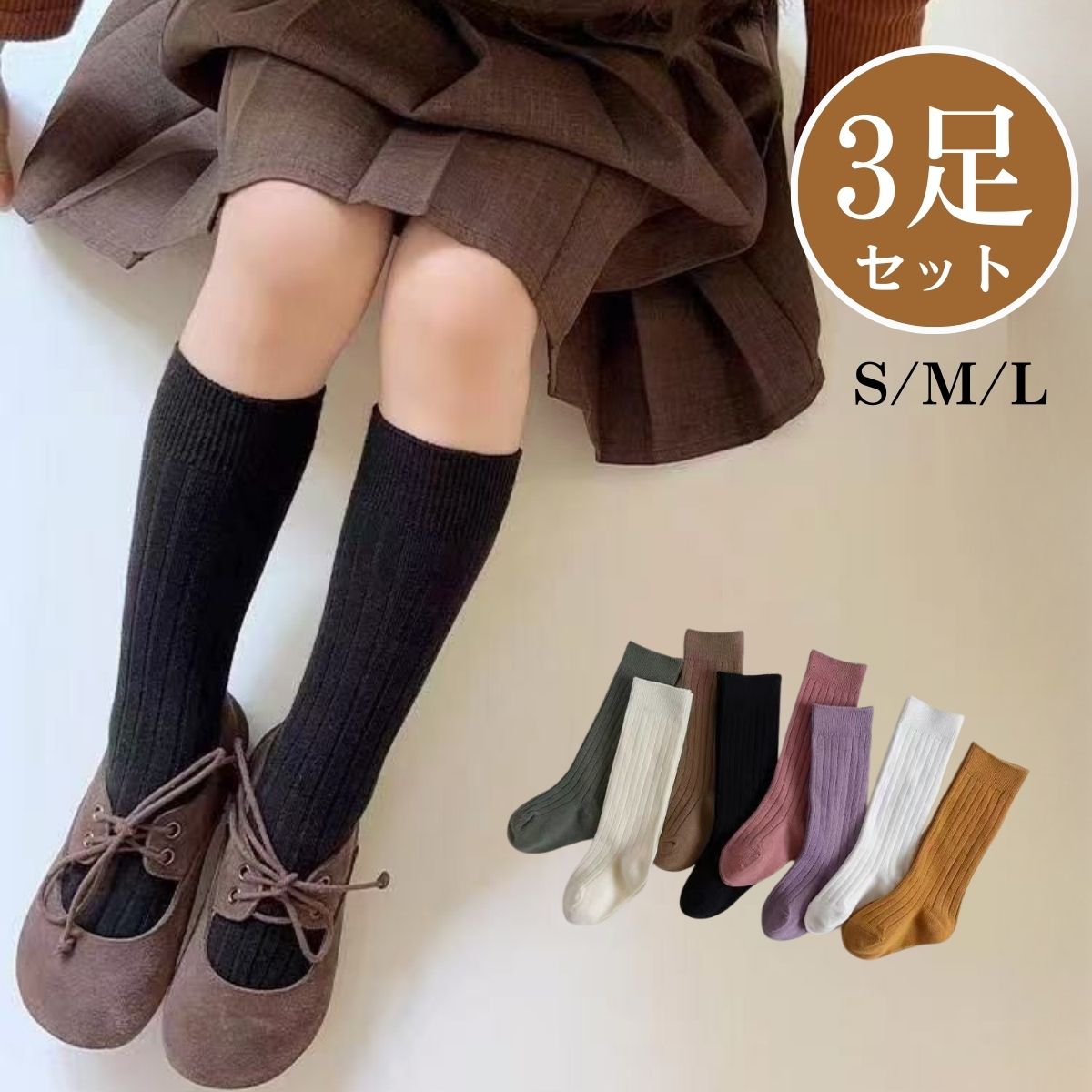 子供 靴下 目立つ キッズ ハイソックス 10カラー 無地 3足入り カラフル カラーソックス 通園 通学 入学準備 お遊戯会 発表会 運動会 卒園 卒業 秋冬