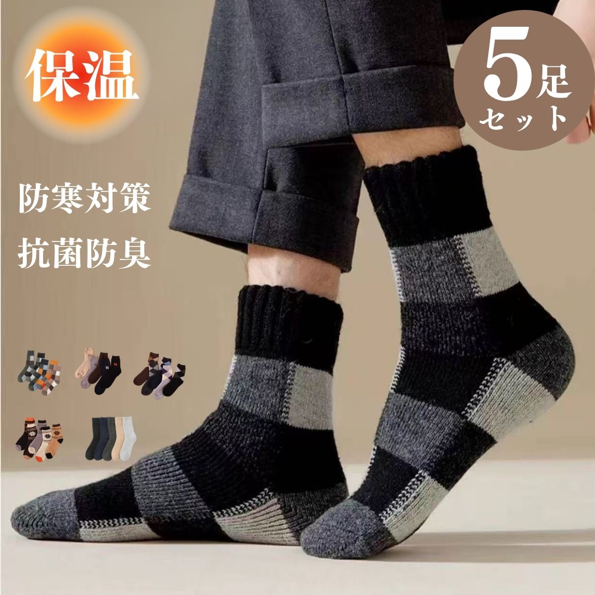 靴下 ソックス 暖かい メンズ 【5足セット】 高品質 5足組 5色 ソックス 保温 厚手 防寒対策 ウィンタースポーツ ワンポイント あったか 冬 防寒 冷え対策 冷え性 爆買