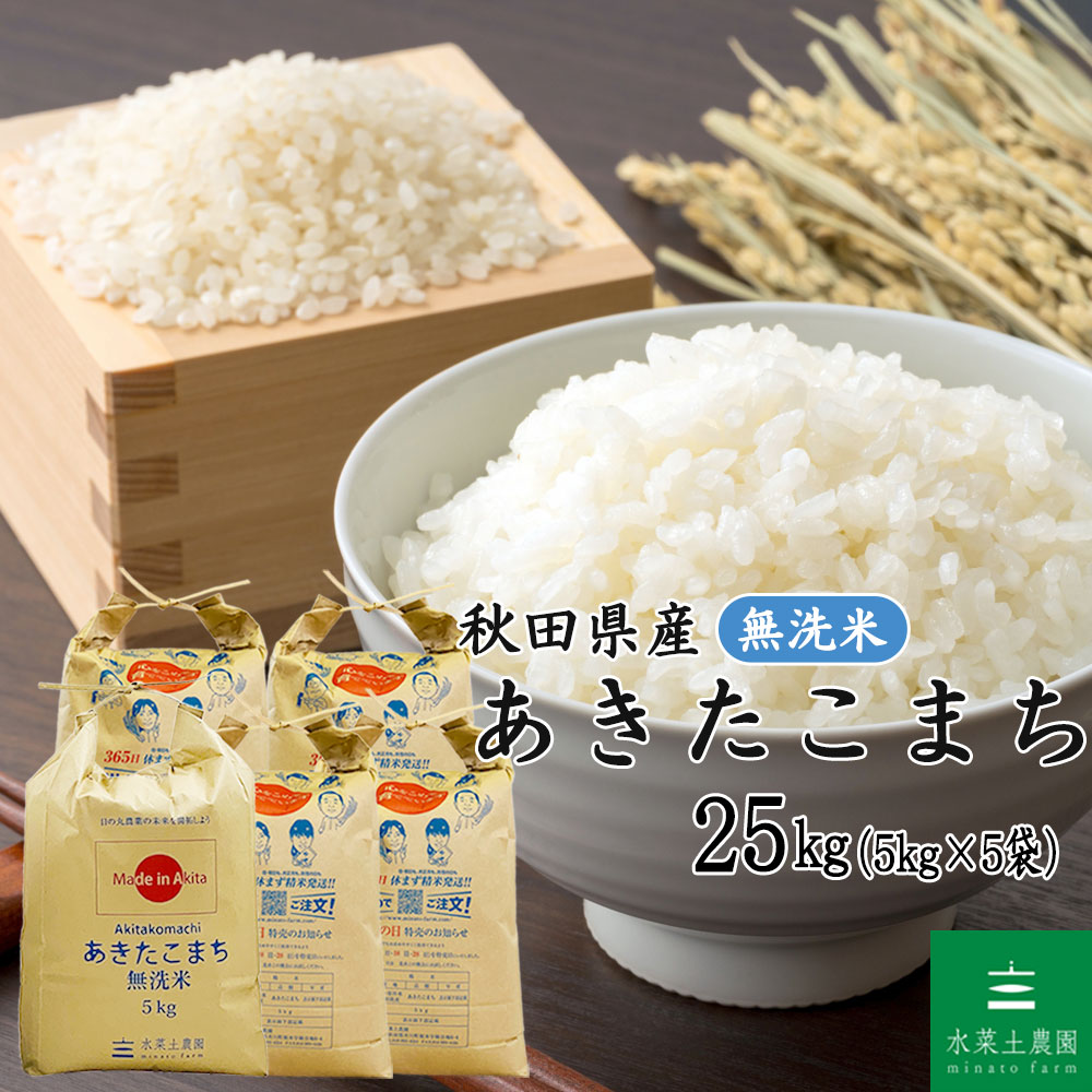 米 お米 無洗米 あきたこまち 25kg (5kg×5袋)秋田県産 農家直送(選べるプレゼント付き) 令和7年産