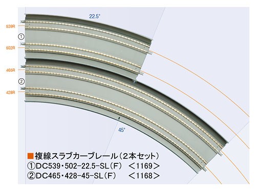 1169 複線スラブカーブレールDC539・502−22.5SL F 2本セット トミックス