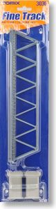 単線トラス鉄橋は橋りょうタイプのマクラギ付き。製品は近代的な青色デザイン。長さは280mmです。