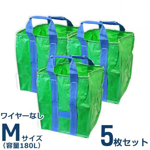 自立万能袋 『ユーズフルバック』 Mサイズ 《5枚組セット》 (容量180L/ワイヤーなし)ガーデニング作業で出るゴミや枯葉・現場作業の廃材処理などに最適な自立万能袋です。