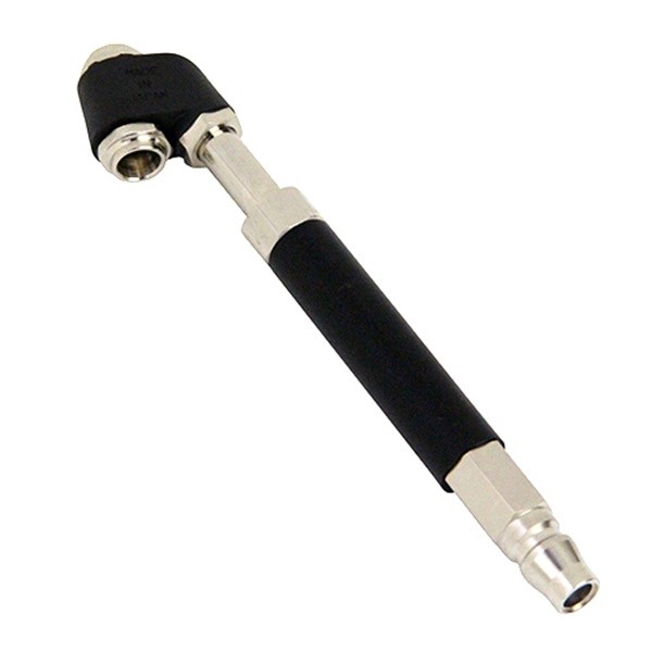 しっかり握れて冷たくないゴムグリップを採用した、タイヤの空気入れです。