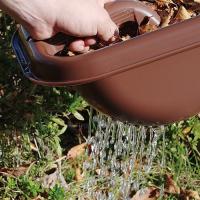 水抜き穴付で濡れ落ち葉の水、水洗い後の収穫物水切り。