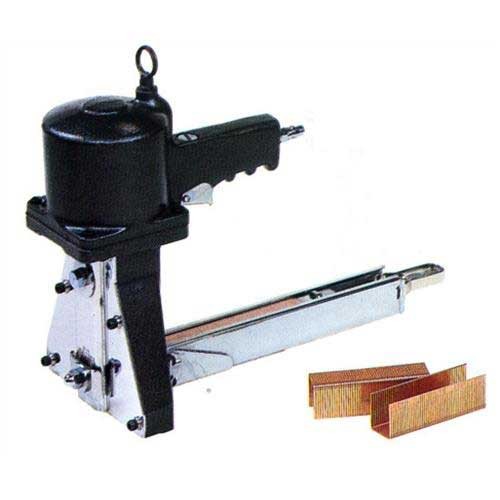 輸出用梱包の強い味方!強力な針打ち力で木箱にかわる強化段ボール二層・三層の段ボール梱包も簡単に製缶可能ですロック 封函機LJ型 コの字エアータイプ | 針組込本数 | 100本 | | 針サイズ | 25mm、 32mm、 38mm