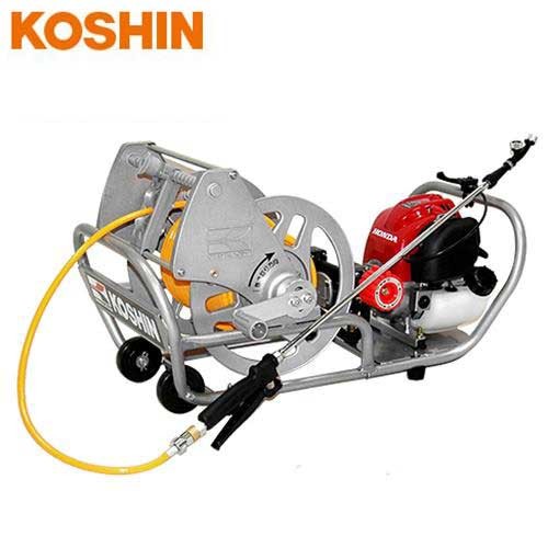 | 標準付属品 | ストレーナー 1ヶ、2段伸縮ノズル(109〜62cm) 1本、ジュビリバンド 1ヶ、リールハンドル用ボルト 2本、リールハンドル 1ヶ、ヨリ戻し 1ヶ、握りグリップ 1ヶ、オイル交換用ボトル 1ヶ、吸入ホース (2.5m) 1本、余水ホース(2.5m) 1本、縦型二頭口噴口 1ヶ、泡状除草二頭口噴口 1ヶ | ||