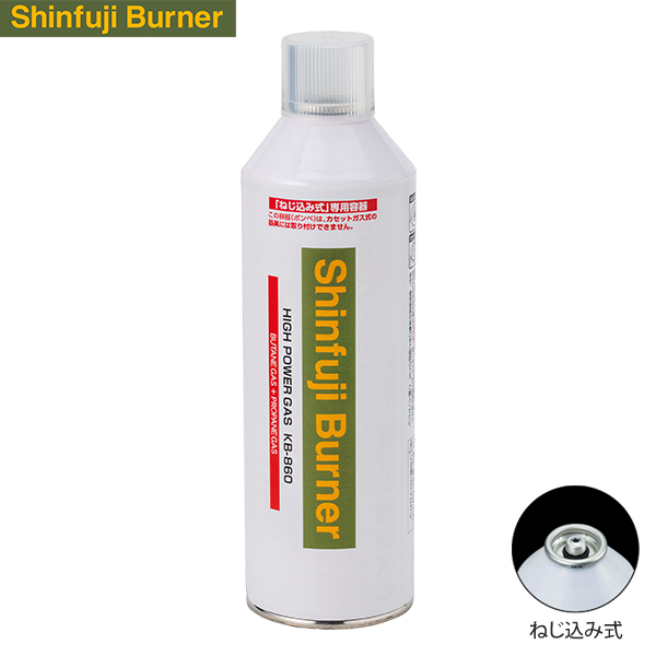 安全に装着が可能なねじ込み式タイプの高出力ボンベです。プロパンの配合率アップで火力アップ。フルタイム生火が出ません。また、強耐圧缶仕様により安全にご使用いただけます。