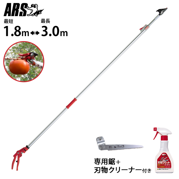 アルス 超軽量伸縮式高枝鋏ライトチョキズーム 150Z-3.0-5D 《専用鋸+刃物クリーナー付き》高所の枝をスムーズにカットする高枝鋏に専用鋸パーツと樹脂汚れを落とし切れ味をよみがえらせる刃物クリーナーが付いたお得なセットです。