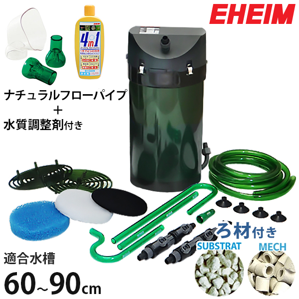 | 付属ろ材 | フィルターパッド各種(細目×1枚、粗目×1枚、活性炭×1枚)、エーハイムメック、サブストラット |