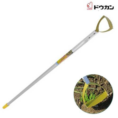 鋭いのこ目でざっくり雑草抜きや土ほりができる長柄タイプの草取機です。