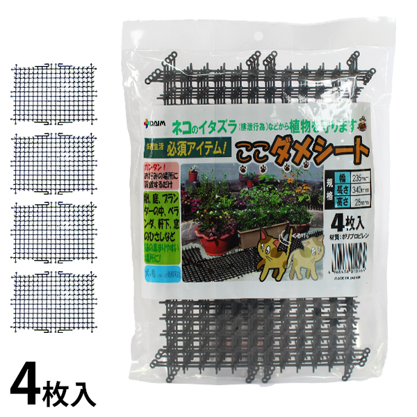 第一ビニール ネコよけ対策マット ここダメシート・ブラック 4枚入り (W235×L340mm) [猫よけ対策 猫よけグッズ 野良猫対策 ここだめ]
