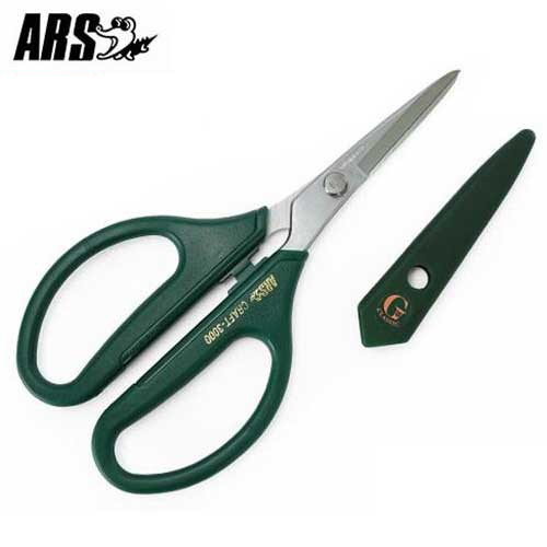 アルス ガーデニング鋏 『Gクラシック アルスヌーボー』 GC-3000 (全長170mm/刃長45mm/質量73g)花摘み、切り戻しに便利なガーデニング鋏です。草姿が乱れてきたら思いきって切り戻すと、わき芽が伸び、植物を長く楽しむことができます。また、小枝や硬い茎も切れるので、盆栽の手入れなど細かな作業にも最適です。ソフトグリップなので手に負担がかかりにくく、使用時の疲労感をやわらげます。保管や持ち運びに便利なキャップ付きです。