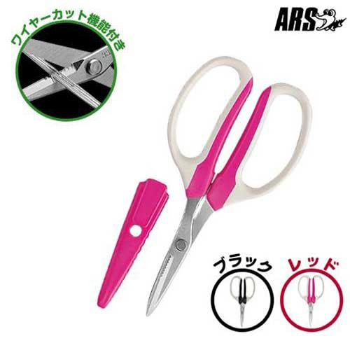 【メール便】アルス ワイヤーカット付ハサミ クラフトチョキ プリザ FW-330HC (レッド/ブラック) [ARS 剪定 鋏 はさみ]