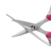 刃元のギザギザがハリガネやワイヤーをしっかりホールドして、わずかな力で切断。いちいち別のワイヤーカットばさみに持ち替えることなく切断することができ、作業のわずらわしさを解消します。