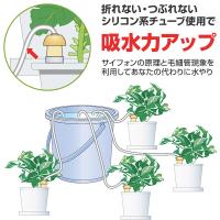 ペットボトルに入れた水をサイフォンの原理で自然に吸い上げ、毛細管現象で給水します。吸水ホースにシリコン系チューブ使用。給水力がアップしました。長期間留守にする際の水やりに大変便利です。
