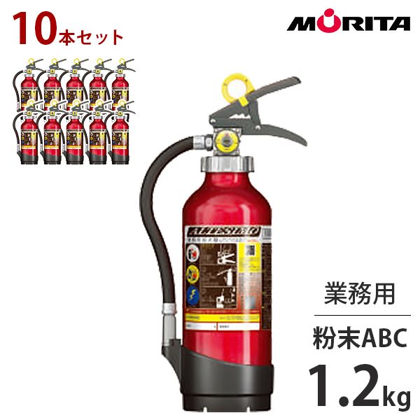 モリタ宮田工業 業務用消火器 アルテシモ4型 MEA4 《10本セット》 (リサイクルシール付き/アルミ製畜圧式粉末ABC)溶接が一切ない一体容器で破裂事故ゼロ、安心の日本製の業務用消火器です。アルミ製でさびない容器で、高い耐蝕性があり、さらに軽量なので、お年寄りの方も楽にご使用いただけます。
