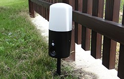 コンパクトで設置しやすい玄関やガレージにもコンパクトに設置できます。さらに、同梱のスパイクで地面に刺して設置することも可能です。