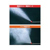 ![]() 3種の噴板が標準装備 噴板Φ2.4、噴板Φ1.8、ワイド噴板W8の3種が付属いるので、用途に合わせてお選びいただけます。 | ![]() 噴角調整ができる 手元の握りを回すことにより、広角〜直射まで噴角調整ができるので、遠近の調節散布が簡単に行えます。 | ![]() 葉裏等の散布もラクラク 先端に角度がついているので、葉裏等の散布が楽に行えます。 |