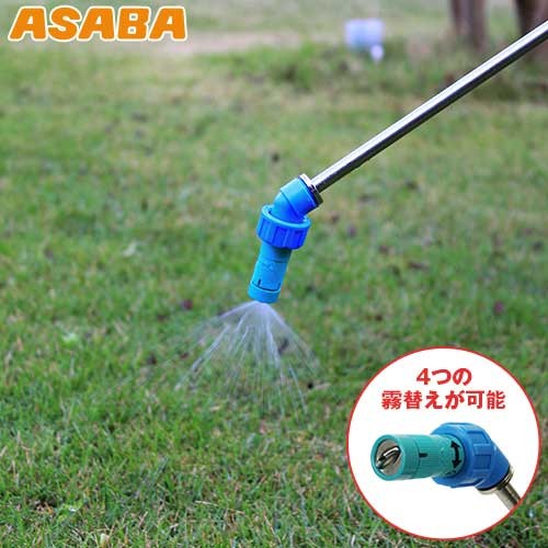 ![]() 4つの霧替えが可能 ノズルカバーを回すことにより、泡(少量散布)と霧(多量散布)に切り替えが可能。さらに、ノズルをタテ・ヨコに変えることで、4種の霧替えができます。 | ![]() フラットタイプの噴霧が可能 フラットタイプ(低圧で広い噴角)の噴霧ができ、除草に最適です。 |