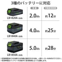 | 充電時間 | 約55分 (バッテリー 2.0Ah LB1820A、充電器LC18A使用時) |