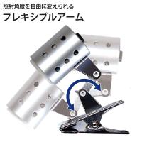フレキシブルアームで照射角を自由に変えられる。蝶ネジで微調整可能。