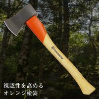 高品質な型押し鍛造の鋼製小型薪割斧。研ぎ直しが容易であると同時に、より長く研ぎ続けることができます。アッシュ材のハンドルに森での視認性を高めるため柄をオレンジに塗装しています。