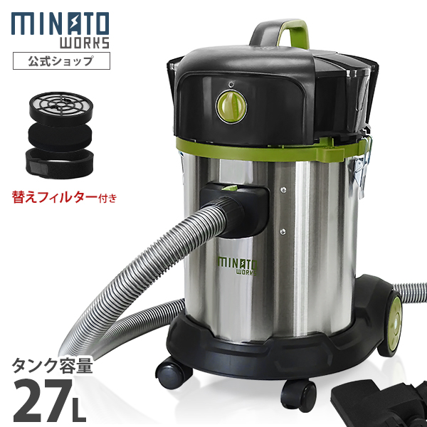 サビに強いステンレス製タンク!ステンレス(SUS201)製のボディで、プラスチックにくらべて強い耐久性で、サビに強く、水気のあるゴミを吸引しても、清潔に保つ事ができます。また、ヘアライン仕上げを施し、高級感のあるボディとなっています。