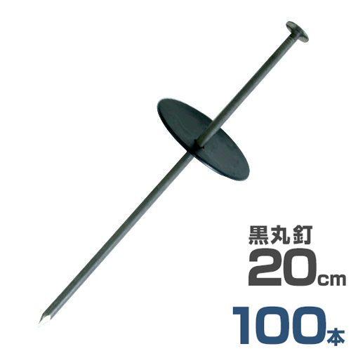 押さえ釘+黒丸付き 20cm 100本セット (防草シート用) [押さえ杭 抑え杭 押さえピン ヘアピン杭 Uピン 除草シート]