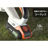 18Vバッテリー式でコードレス18Vリチウムイオンバッテリー式。電源のない場所でも使用できるコードレスタイプ。断線の心配なし。