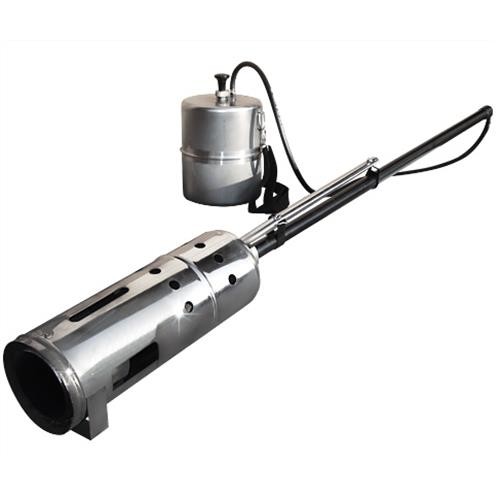 灯油タンク部分を地面に置いたり、肩に掛けて作業できます、作業は燃焼筒のみ、手元が軽くて楽々です。
