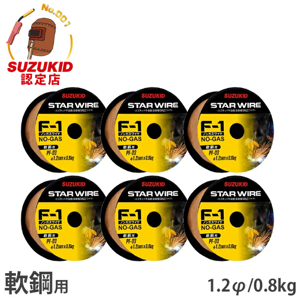 スズキッド スターワイヤF-1 軟鋼用ノンガスワイヤ 1.2Φ×0.8kg PF-03 6個セット [スター電器 SUZUKID 溶接機 溶接ワイヤー]