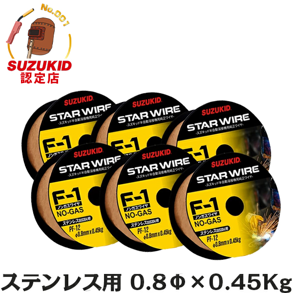 スズキッド スターワイヤF-1 ステンレス用ノンガスワイヤ Φ0.8×0.45kg PF-12 6個セット [スター電器 SUZUKID 溶接機 溶接ワイヤー]