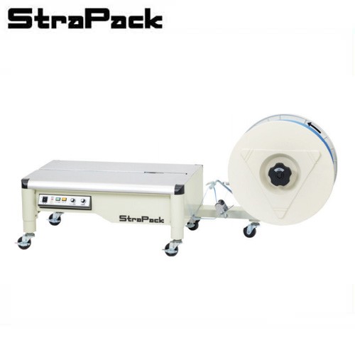 重量物や大型製品のバンド掛けに最適な超低床型半自動梱包機ストラパック 半自動梱包機 『超低床型 iQ-400LB』超低床型ですので梱包物を高く持ち上げることなく梱包できますので、重量物や大型製品のバンド掛けに最適です。