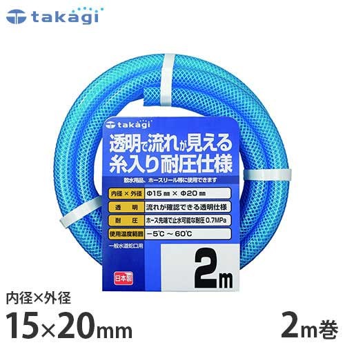 タカギ 園芸散水用ホース 『クリア耐圧ホース15×20』 2m PH08015CB002TM (ホース内径15mm)