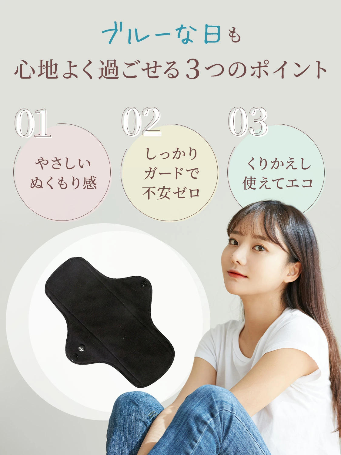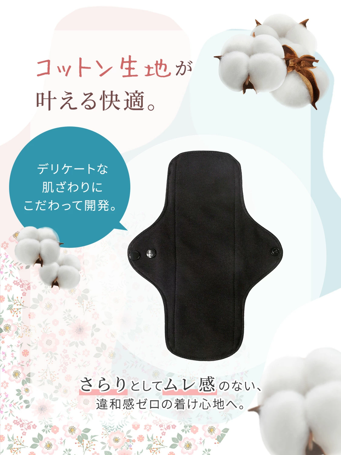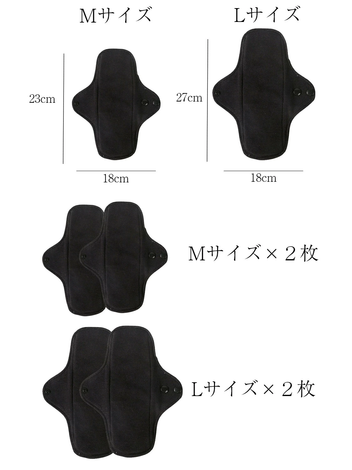 布ナプキン おりもの用 ライナー 4枚セット (Mサイズ2枚 Lサイズ2枚) 軽い日 多い日 布ナプ 黒 ブラック おりものシート