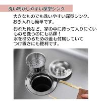 【洗いものをするのに便利】 洗い物がしやすい深型シンクなので、大きめなものでもすっぽりと収めることができます。水が飛び散りにくいので、洗面所や台所では土汚れや水跳ねが気になって洗いにくいものも気兼ねなく洗えます。お庭やビニールハウスの中でも立って作業ができて腰や膝が痛くなる心配もありません。