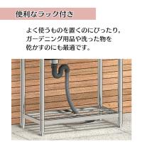 ・物置棚付きで園芸用品や洗ったものを置ける。